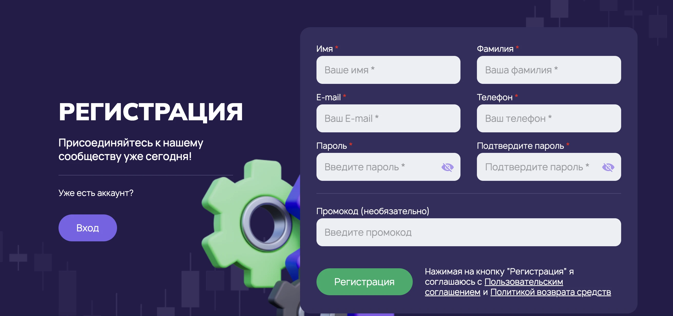 • Сомнительные условия работы. На сайте нет прозрачных тарифов, описания спредов, комиссий, кредитного плеча.